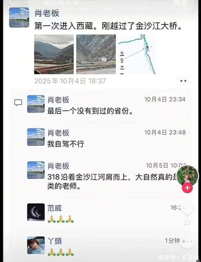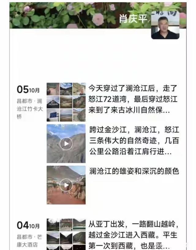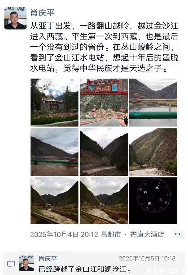 因此,肖庆平一直很兴奋,在朋友圈里一直分享着自己的快乐和激动。 10月4日,从翻越金沙江开始入藏,肖庆平就已经开始了“图文直播”,他的自豪感溢于言表,说中华民族就是“天选之子”。