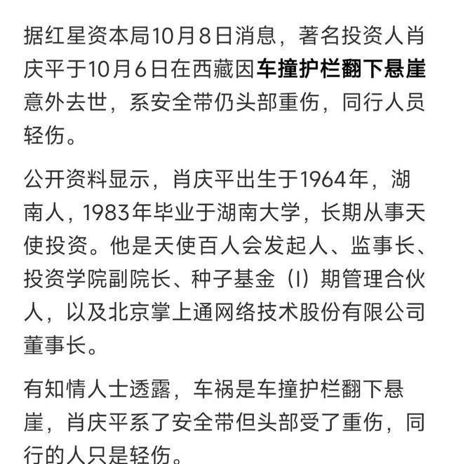 有些话,可不敢乱说!曾经中关村的大佬肖庆平,在国庆期间意外去世,可有网友却一再表示,他不该说那句话。