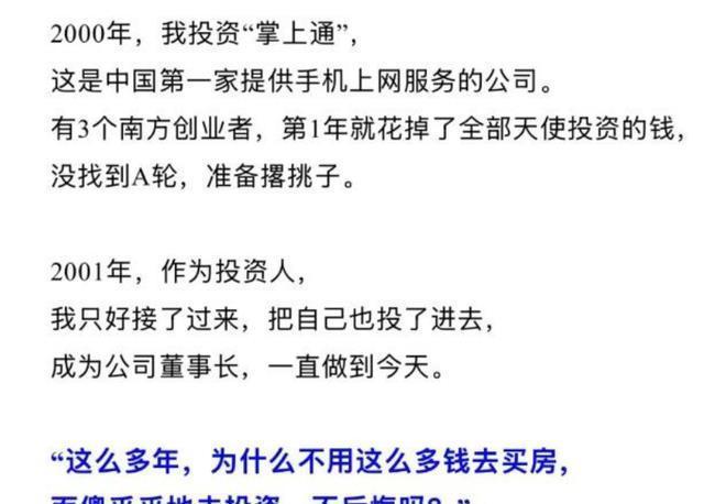 不过肖庆平投资的心不死,他始终看好互联网这个世纪风口。 2001年,肖庆平再次牟足劲全盘接手了中国第一家手机上网服务公司“掌中通”,并且一直担任董事长到今天。 在投资上,肖庆平采取的方式是“量大管饱”,“广撒网”。这些年他在40多个项目上,足足投资了一个亿,但是回报却并非像大家想的那么丰厚。